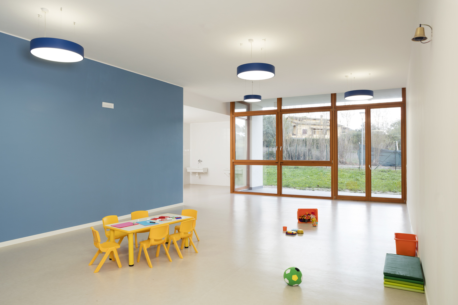 Committenza: Comune di Bracciano Localizzazione: Bracciano | Sassone Programma: Nuovo asilo comunale Team: INARCHECO Prestazione: Progettazione preliminare, definitiva ed esecutiva, direzione lavori, coordinamento sicurezza e pratiche amministrative Superficie: 1.000 mq Fotografia: Camilla Borghese